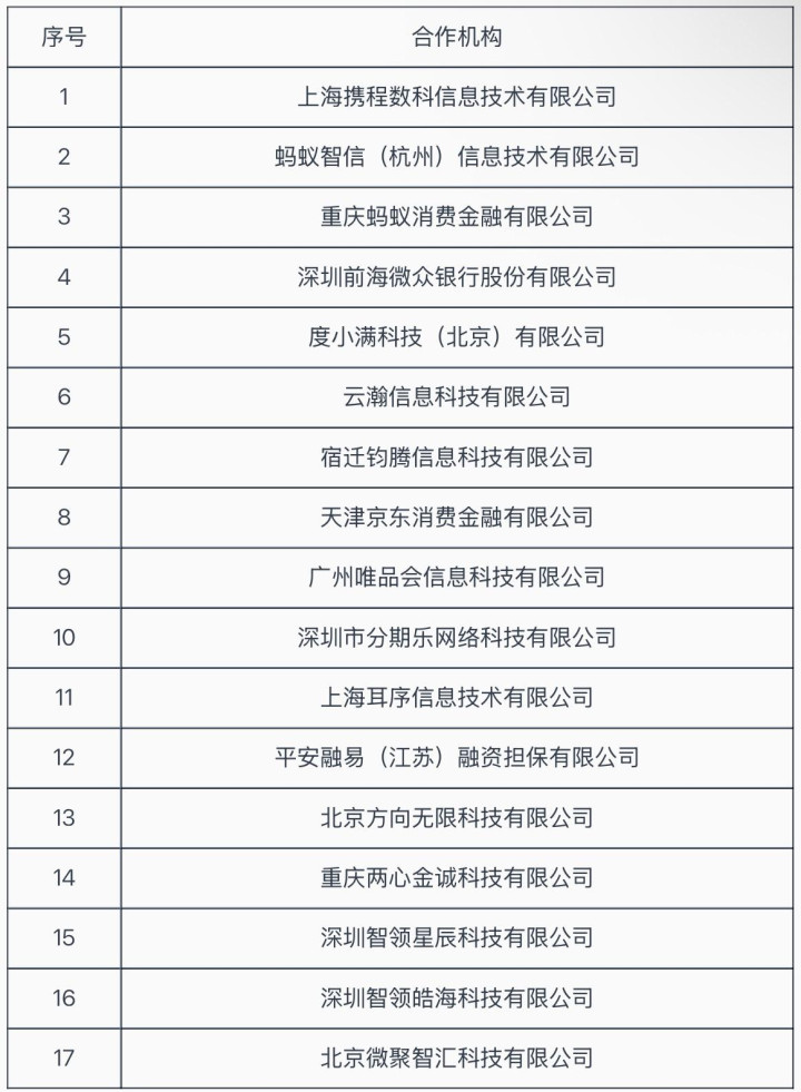 尚诚消金的业务规模增长高度依赖携程等线上渠道。今年3月,尚诚消金官方披露了17家营销获客、共同出资发放贷款合作机构,携程系、蚂蚁系、微众银行、度小满、京东、唯品会等多家头部互联网平台位列其中。